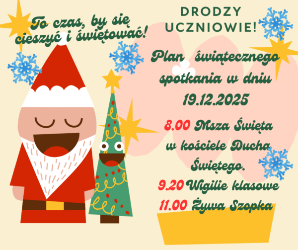 🔔1 września już tuż, tuż 🔔 Zapraszamy wszystkich uczniów, rodziców, pracowników i przyjaciół naszej szkoły na uroczyste rozpoczęcie roku szkolnego 2025/2026. Msza święta Parafia pw. Ducha Świętego w Zielonej Górze o godzinie 9.30. Po mszy świętej udajemy się z wychowawcami do klas. Do zobaczenia 🍀